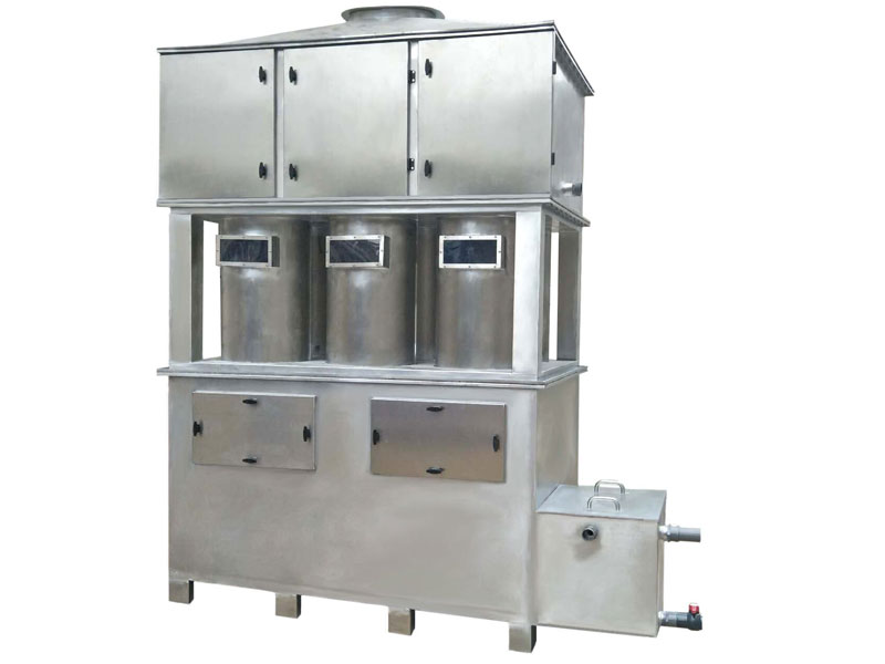 废气从方形不锈钢喷淋塔塔体下方进气口进入喷淋塔,然后均匀地通过均流段上升到填料吸收段。在 填料的表面上,气相中物质与液相中物质发生化学反应。塔体的最上部是除雾段,气体 中所夹带的吸收液雾滴在这里被清除下来,经过处理后的洁净空气从喷淋塔上端排气管 排放。吸收液在塔底经水泵增压后在塔顶喷淋而下,最后回流至塔底循环使用。